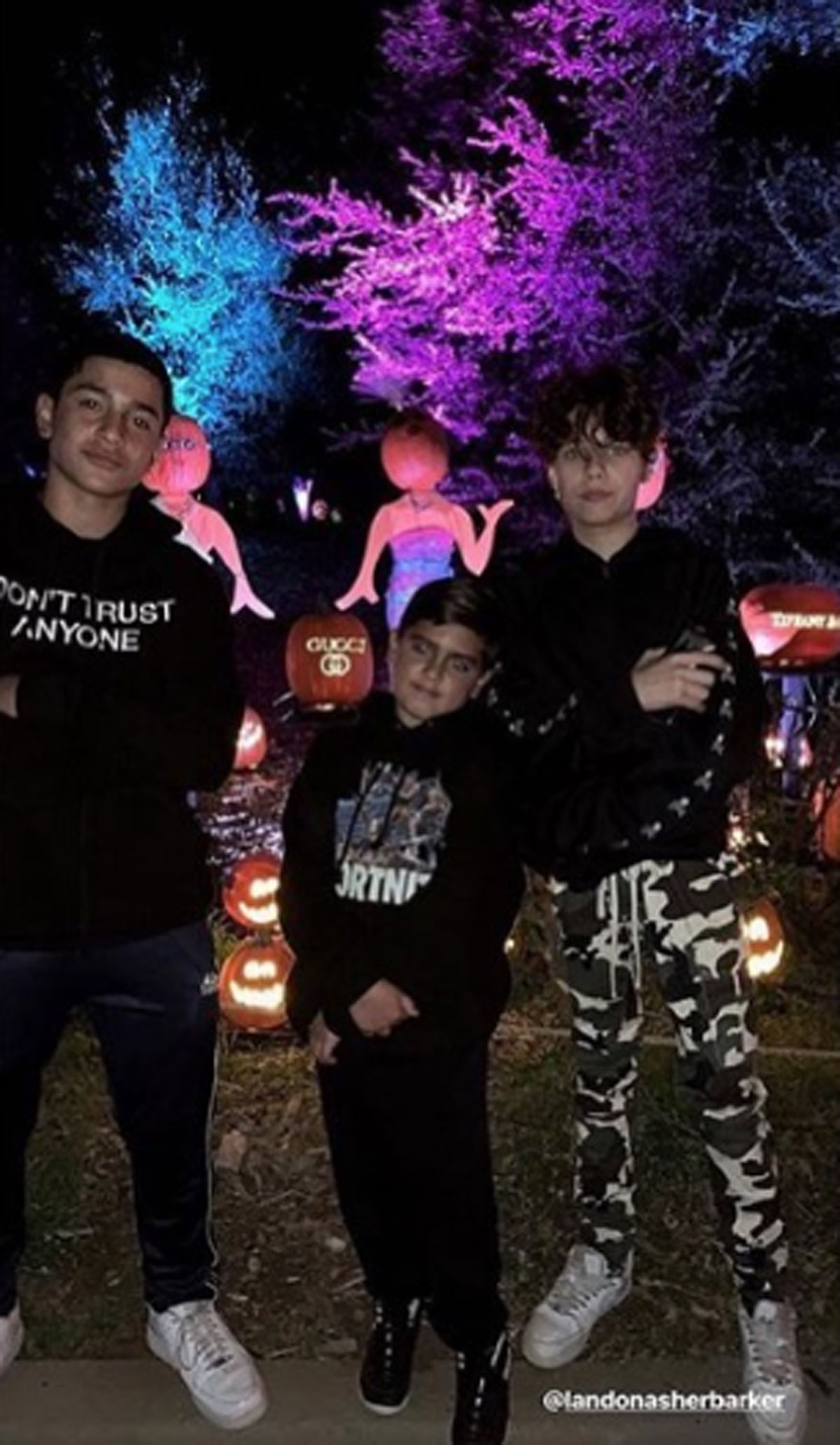 While we got a glimpse of P’s outfit (up above), Mason opted to go casual to hang out with the big kids: